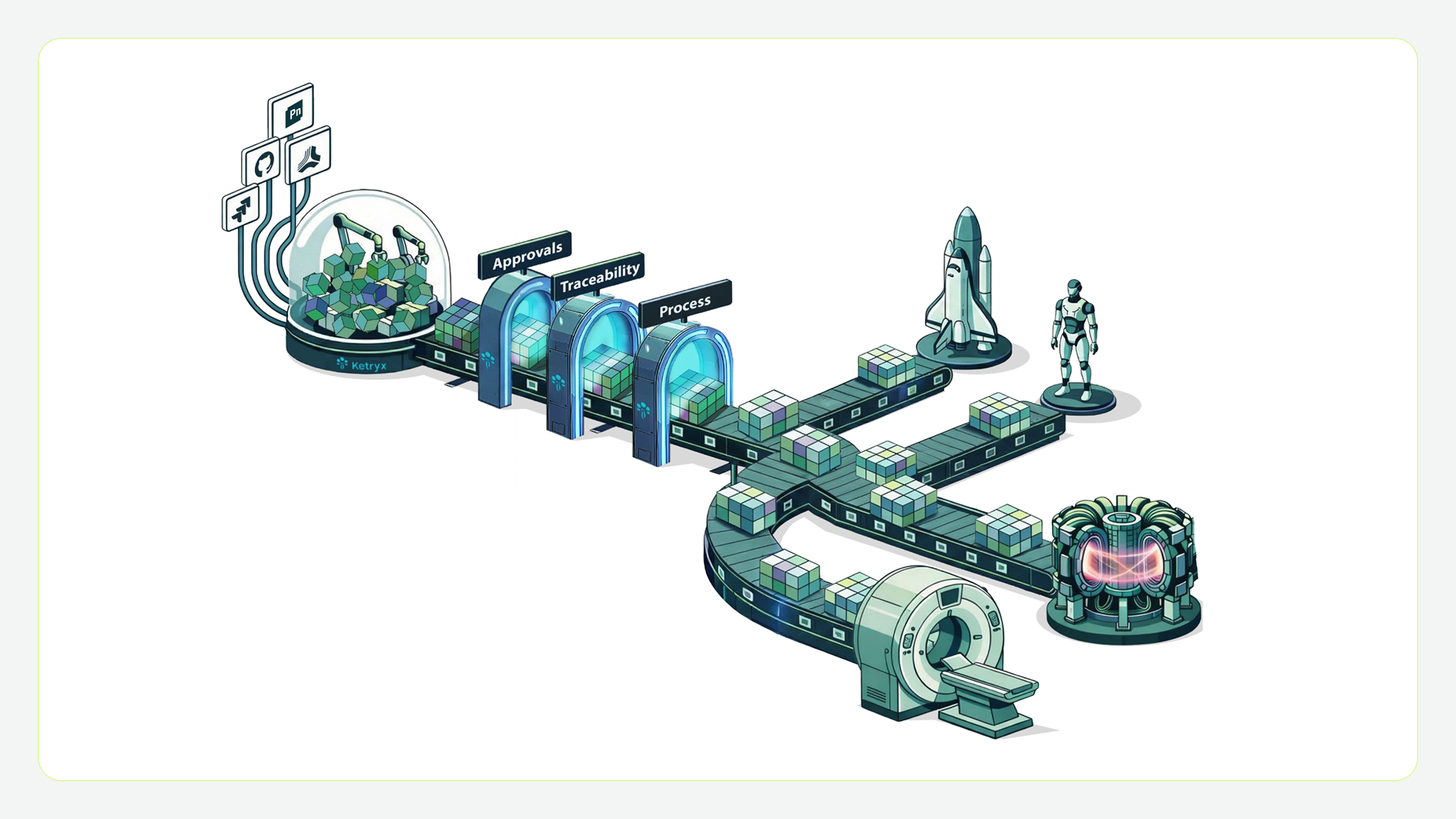Ketryx Agents perform risk-based quality review, test coverage analysis, and conflict detection across your entire artifact chain